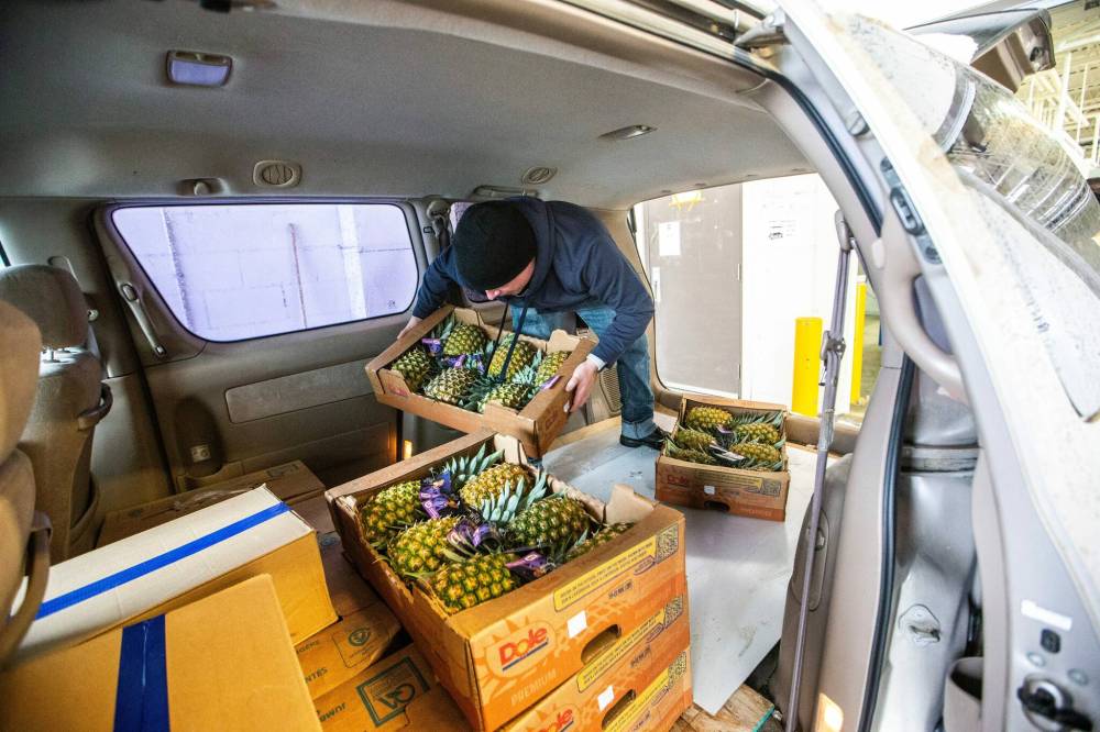 Ernest Guptill fills a van up at Harvest Manitoba with food going to a food bank at the Church of Living Hope.