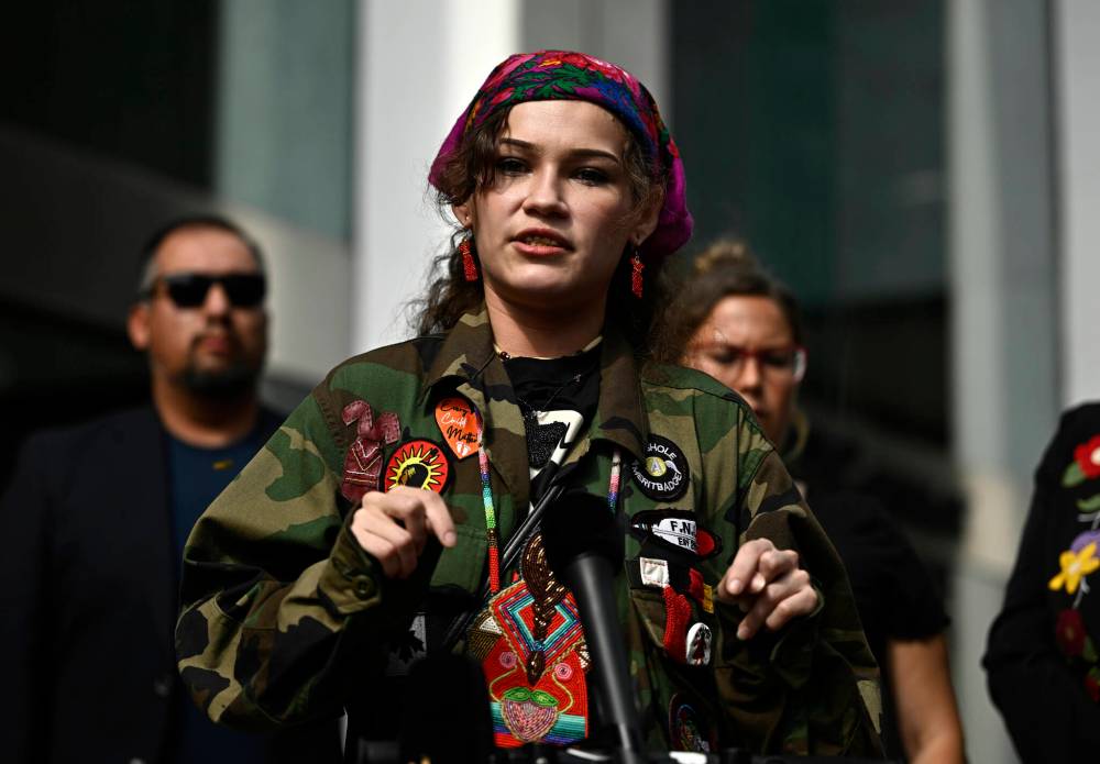 Cambria Harris, daughter of Morgan Harris, speaks at a news conference in Ottawa in September. (Justin Tang / The Canadian Press files)