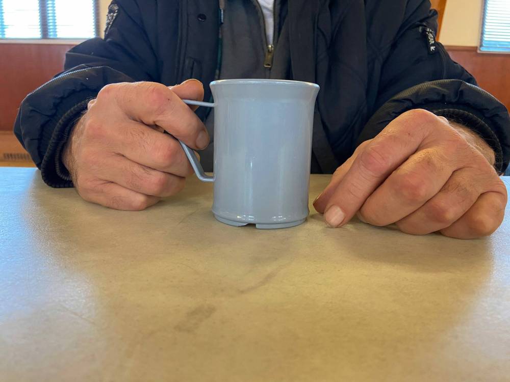 Jeff shuffles to and from the coffee and snack line at Selkirk’s Our Daily Bread Soup Kitchen. The coffee tastes good today, and he’ll grab a sandwich for lunch later. He’s waiting for a woman who regularly comes in with her family, because she’s offered him a painting job at her house.