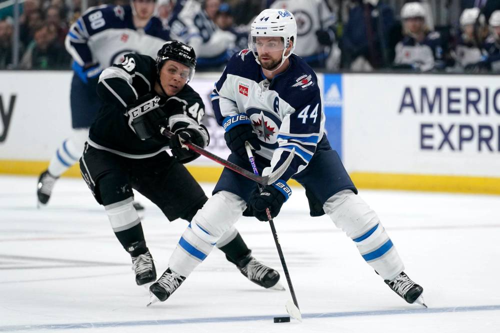 Mark J. Terrill / The Associated Press files Winnipeg Jets defenceman Josh Morrissey carries the puck while Los Angeles Kings centre Blake Lizotte tries to slow him down. The Kings are at the top of the Western Conference with a .750 winning percentage.