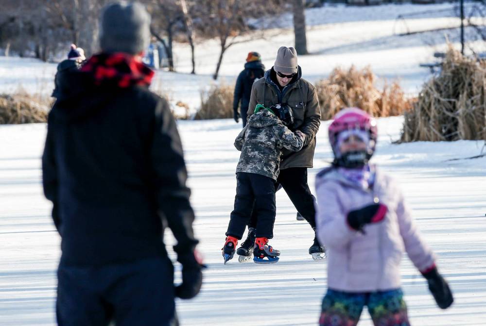 The Winnipeg woman and her family laced up for the first time this winter, joining dozens of others who ventured out on the ice as Environment Canada tracked temperatures hovering around -8 C.