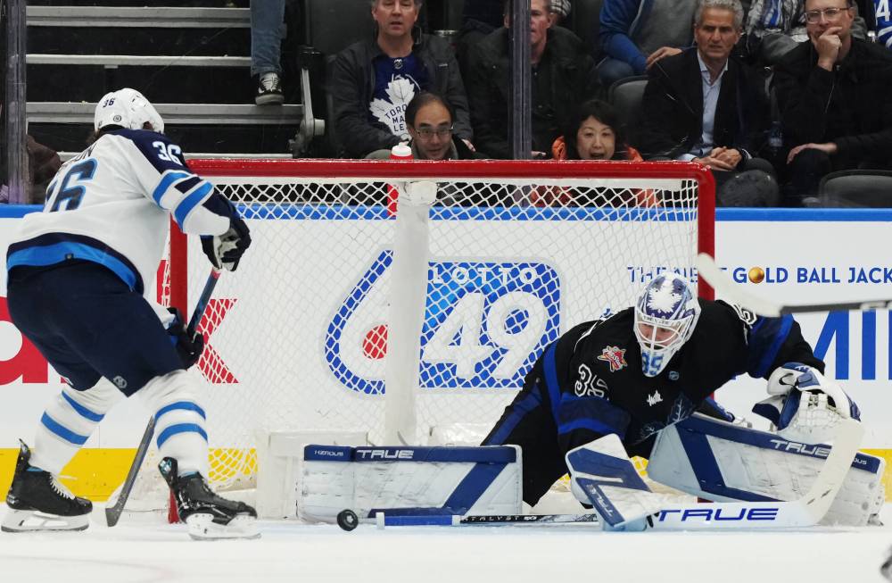 Goalies share spotlight in Jets 1-0 loss to Leafs