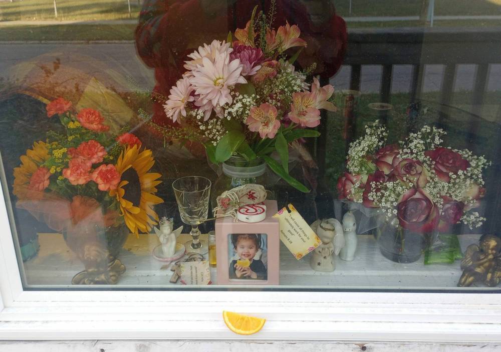 The parents set up a memorial to Hanna on a window sill, complete with a photo of the smiling child, flowers, angel figurines and a tiny cross.