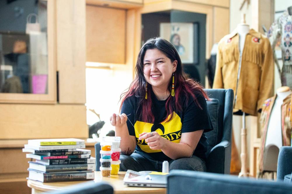 She understands the importance of creating opportunities for children and others to learn Indigenous beadwork, especially because it wasn’t something she learned growing up, because of the impact residential schools has on her family from Canupawakpa Dakota First Nation.