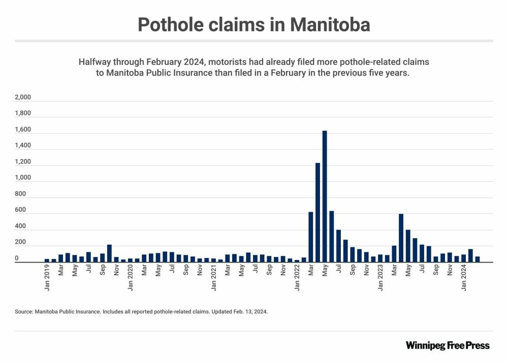 Data from MPI show more claims related to potholes were made in the first 11 days of February than that entire month in the previous five years.
