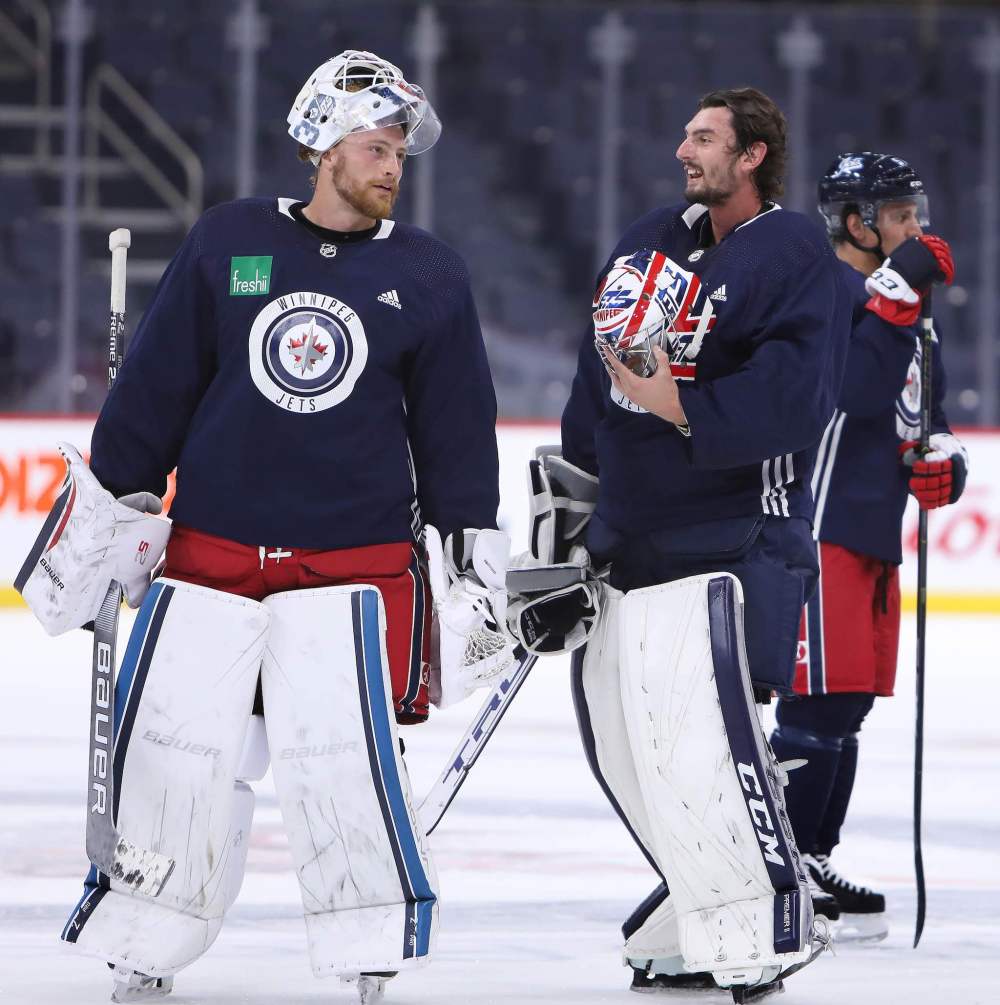 RUTH BONNEVILLE / FREE PRESS FILES Goalies, Laurent Brossoit (left) and Connor Hellebuyck, who sit next to each other in the Jets dressing room, also happen to be good friends.