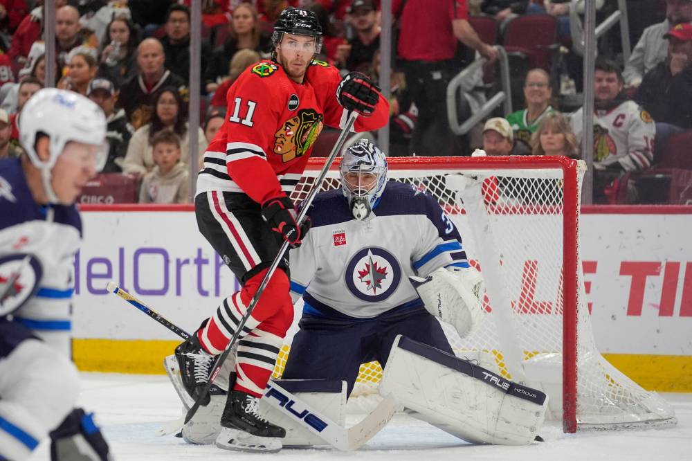 1. The hit – There was a scary moment for the Jets midway through the second period as Blackhawks forward Taylor Raddysh carelessly skated to the front of the net and clipped Jets goalie Connor Hellebuyck in the head. Hellebuyck was out challenging a point shot and there’s no issue with Raddysh working his way to try and create a screen, but he needs to be aware of where the opposing goalie is – even if it was clear this wasn’t an intentional hit. Raddysh was given a minor penalty for an illegal check to the head, while Hellebuyck stayed down on the ice for more than a minute as he composed himself. Jets head athletic therapist Rob Milette came out to attend to Hellebuyck and he remained in the game.
