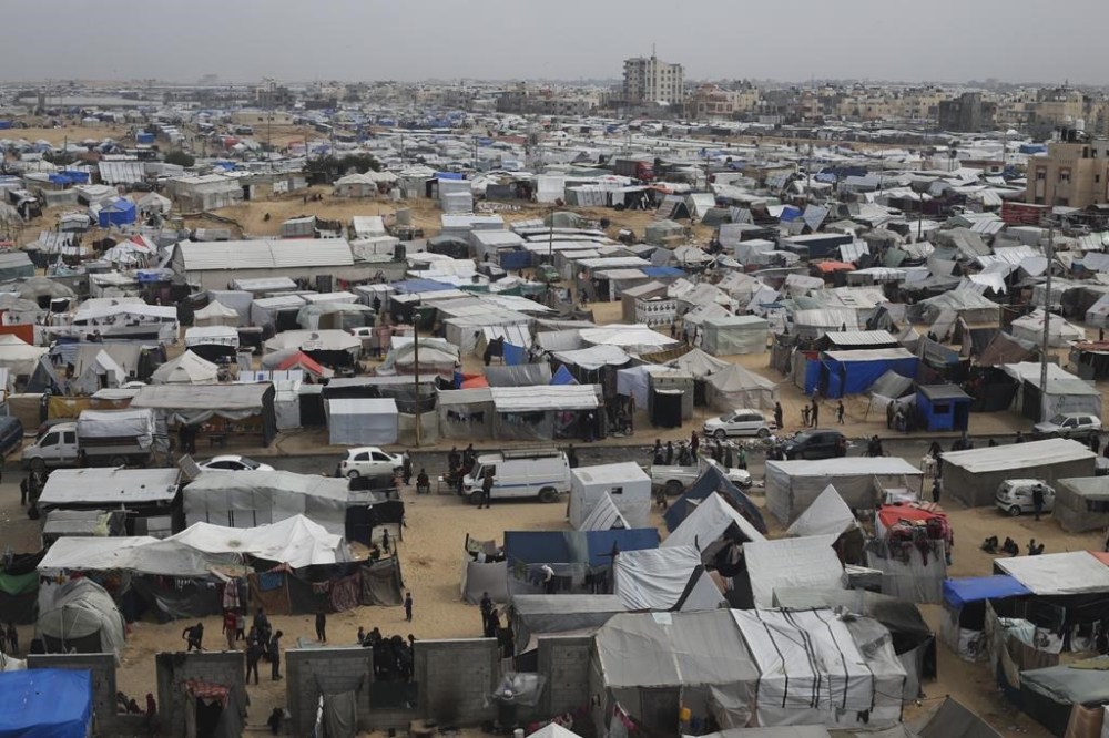 A tent camp housing Palestinians displaced by the Israeli offensive is seen in Rafah, Gaza Strip, Tuesday, Feb. 27, 2024. (AP Photo/Hatem Ali)