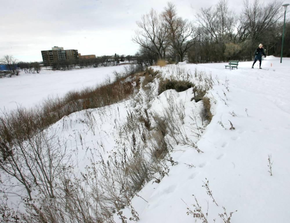 Erosion along the banks of the Red River at St. Vital Park. The City of Winnipeg is poised to spend $18 million on riverbank stabilization over the next six years.