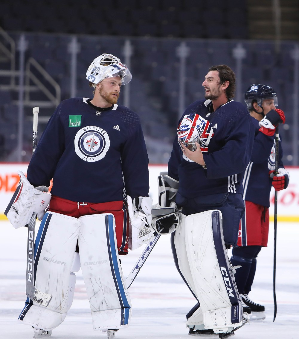 Laurent Brossoit and Connor Hellebuyck are currently leading in a tight battle with the Florida Panthers for the Jennings Trophy for fewest goals against allowed in the NHL. (Ruth Bonneville / Free Press files)