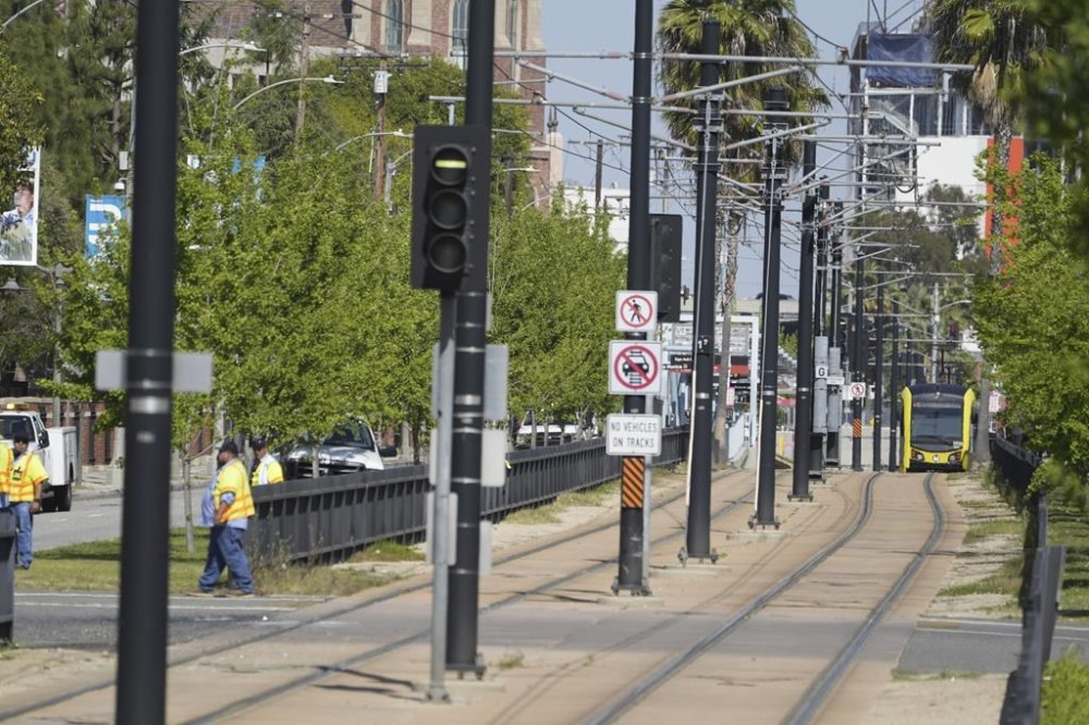Dave Sotero, a spokesperson for LA Metro, said the bus crossed into the path of an E Line train. The light rail line runs from East Los Angeles to downtown Santa Monica mostly along streets, and not all of the crossings have gates.
