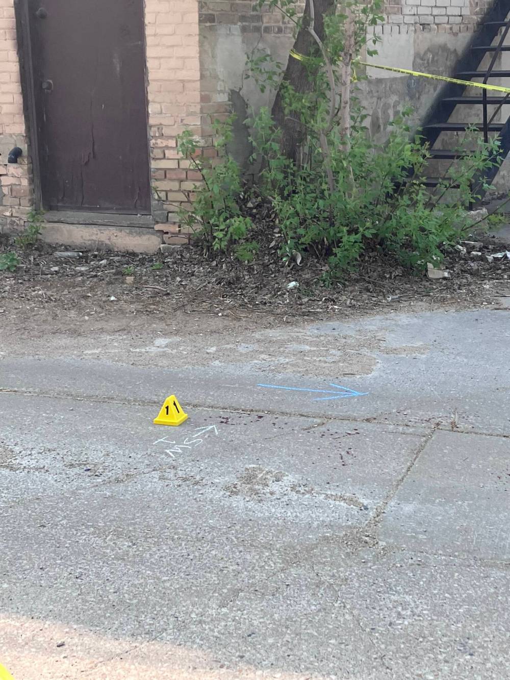 Late Sunday morning, police crime scene tape blocked the lane behind the north side of Portage Avenue, where blood spatter was marked with chalk on the ground. Blood was also spattered on the southwest sidewalk of Portage Avenue, at the corner with Arlington Street.