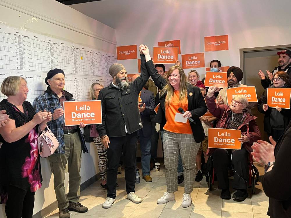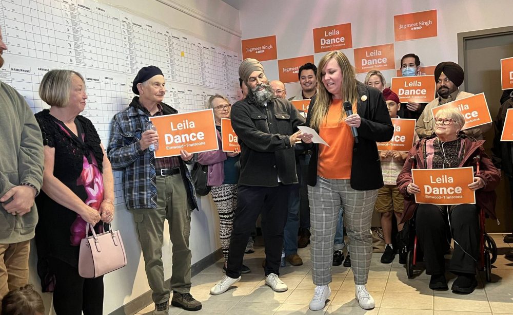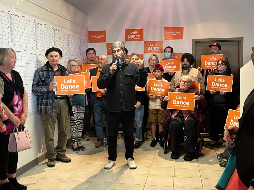 “Let’s show the people of Elmwood-Transcona we can re-elect another New Democrat, that we can get Leila Dance elected here,” Singh said to cheers from the crowd.