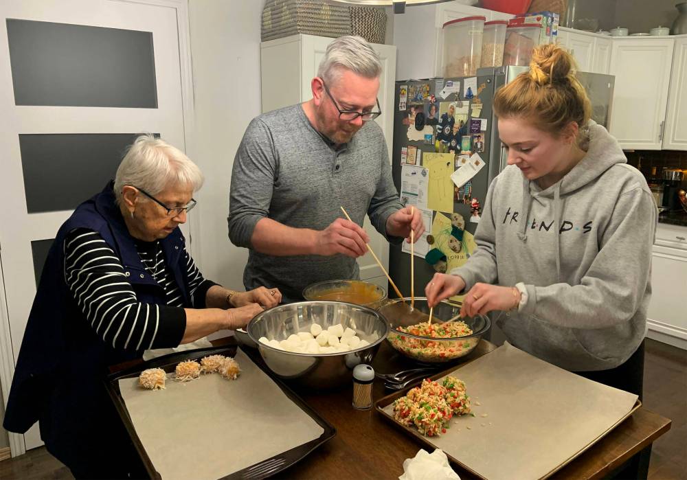 Three generations of the Rheault family (Jeannette, David and Meagan) do some baking together recently. (Supplied)