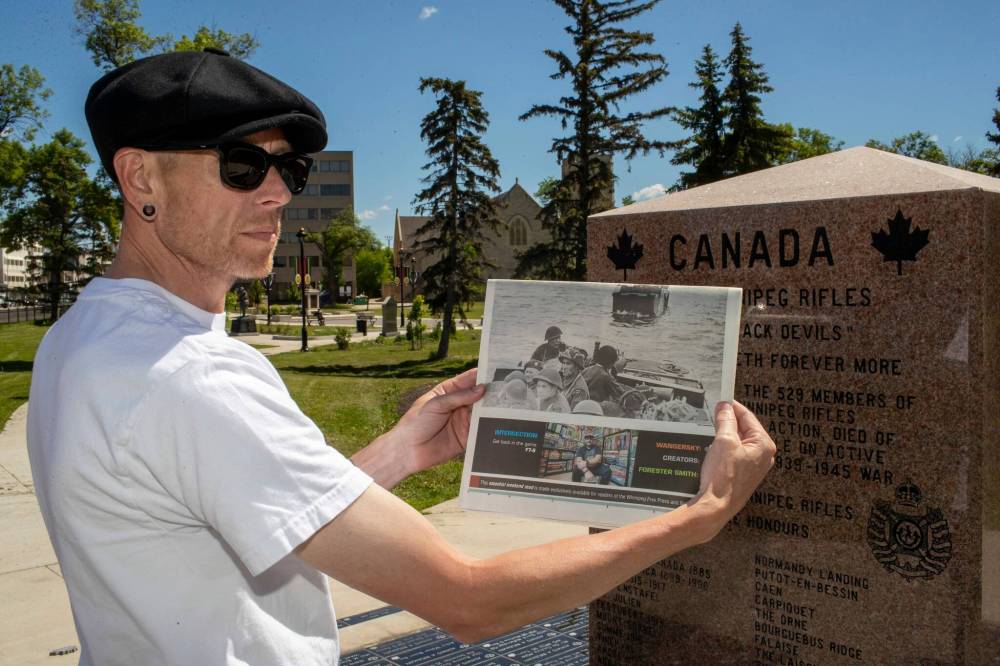 The photo of his grandfather’s landing craft approaching the beach is featured prominently at the centre, Jonathan said. He said he was surprised and pleased to see the Free Press feature it in the paper recently, something that gave him the extra motivation to go to the Saturday event, he said.