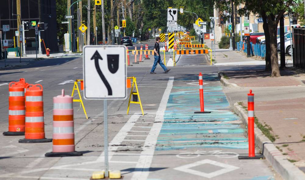 MIKE DEAL / FREE PRESS FILES The city will explore contracting out part of its road-marking operation after significantly falling behind this year due to outdated equipment and a high number of rainy days.
