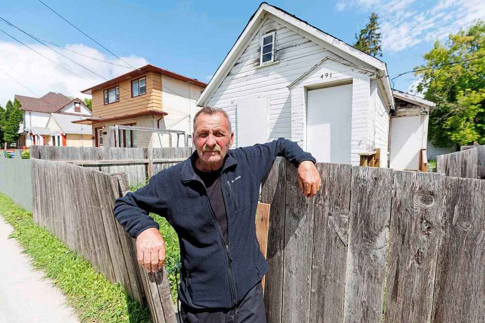 MIKE DEAL / WINNIPEG FREE PRESS Darrell Warren, president of the William Whyte Neighbourhood Association, in front of a vacant house at 491 Burrows Avenue that was set on fire last weekend.