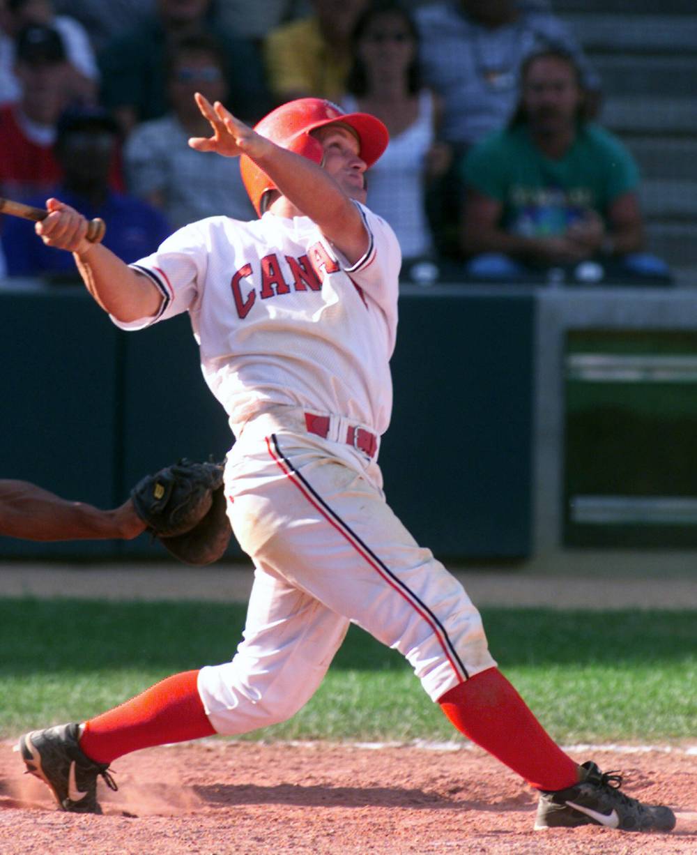 Stubby Clapp connects for the extra-inning game-winning hit against the U.S. at the 1999 Pan Am Games in Winnipeg.