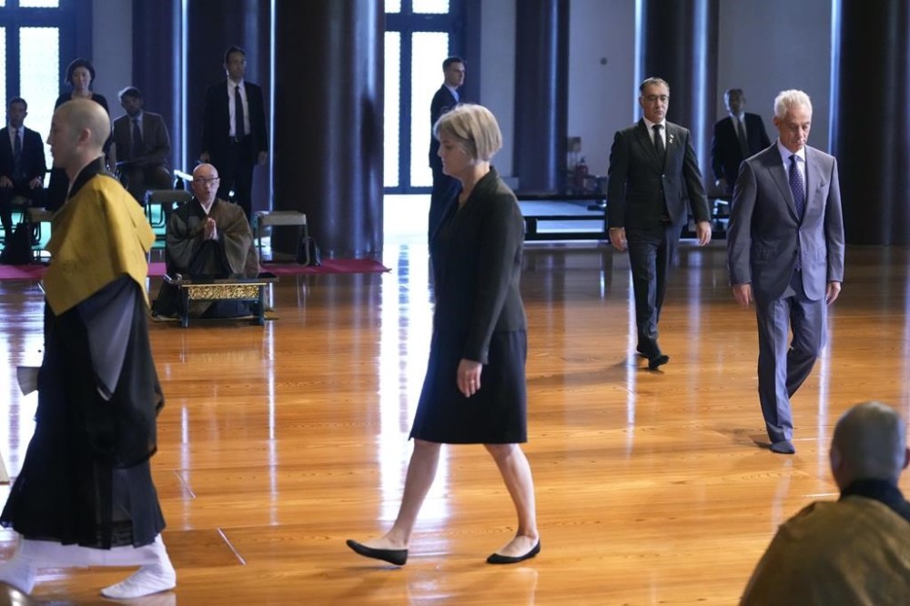 U.S. Ambassador Rahm Emanuel instead attended a ceremony at a Buddhist temple in Tokyo honoring the Nagasaki atomic bombing victims, joined by his Israeli and British counterparts, Gilad Cohen and Julia Longbottom.