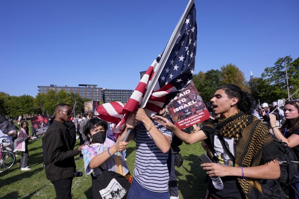 Hatem Abudayyeh, co-founder of the U.S. Palestinian Community Network, put the onus on police to keep the peace when asked about the clashes between pro-Palestinian protesters and police. The police “only have one responsibility here,” he said. “They have the responsibility of not infringing on our First Amendment rights.”