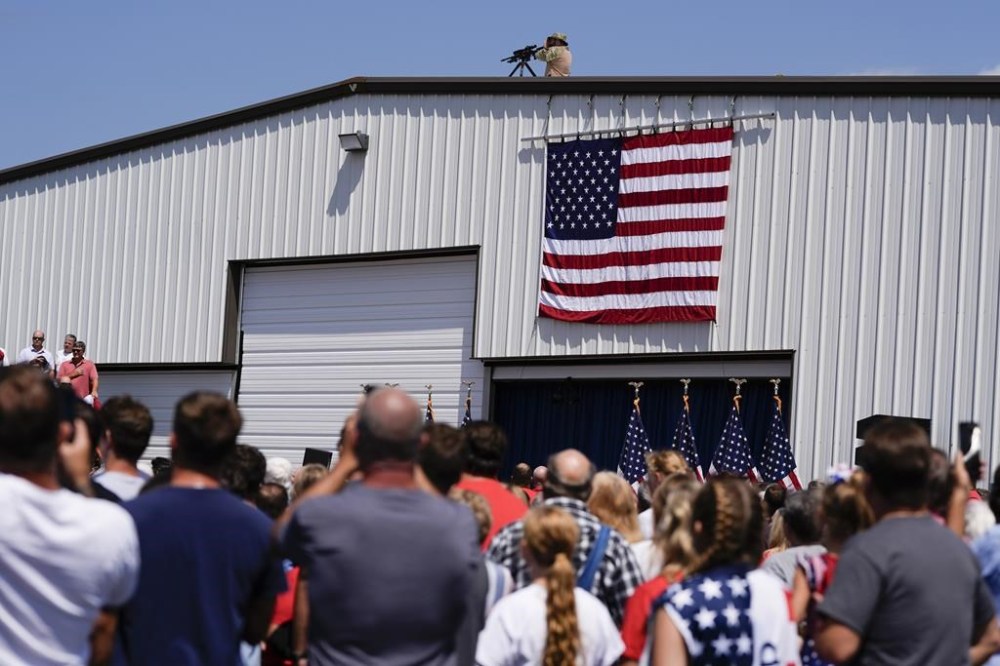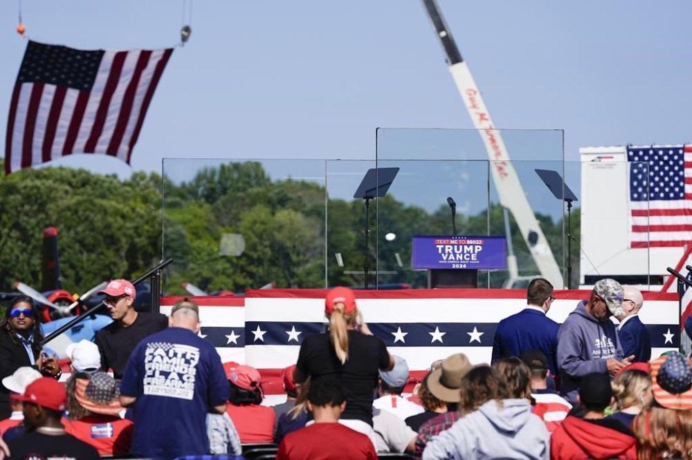 ASHEBORO, N.C. (AP) — At his first outdoor rally since last month’s attempted assassination, Donald Trump spoke from behind bulletproof glass Wednesday in North Carolina at an event focused on national security. On politics, he called his predecessor Barack Obama “nasty” for his comments the night before at the Democratic National Convention.
