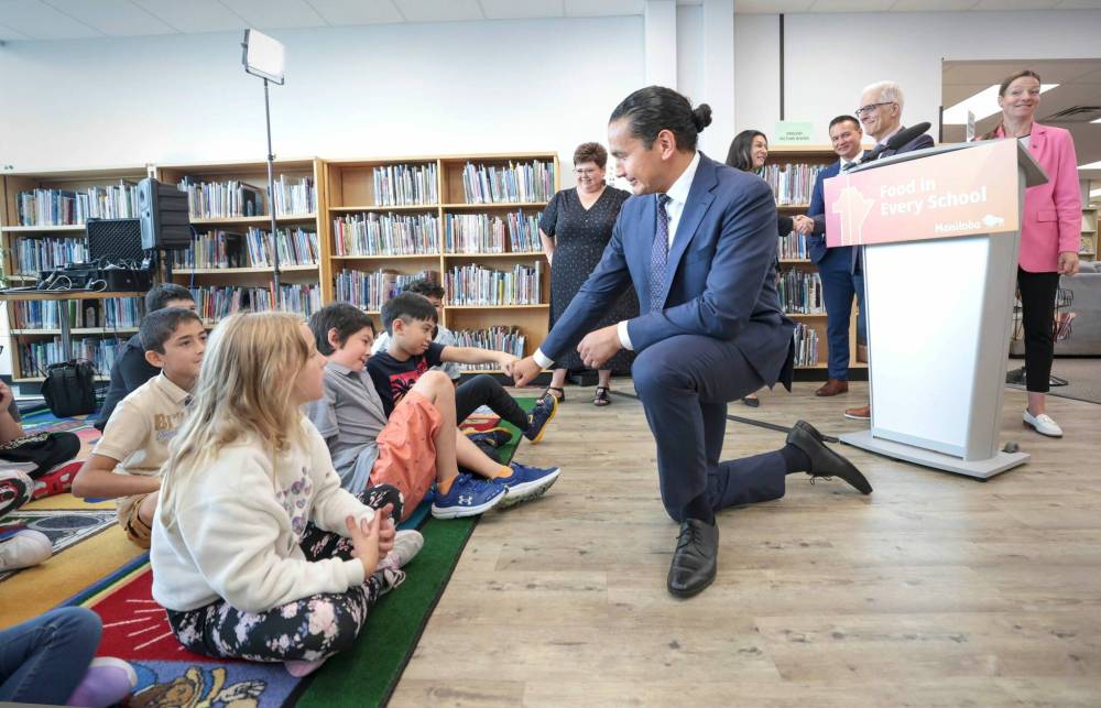 “The toughest part of being a parent, practically, is getting the kids ready for school in the morning, including packing a lunch. Governments can’t do everything — that’s going to continue to be a challenge for many parents out there,” Kinew told a crowd in the Rossmere school’s library.