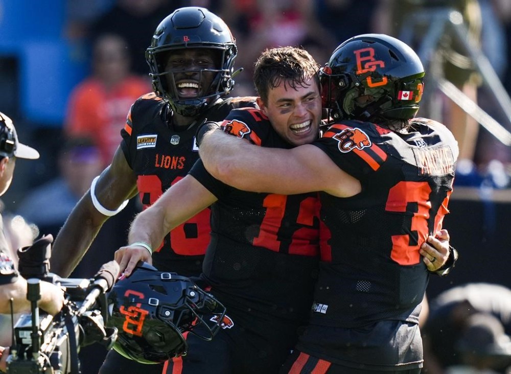 B.C. Lions quarterback Nathan Rourke celebrates during a game against Ottawa Aug. 31.