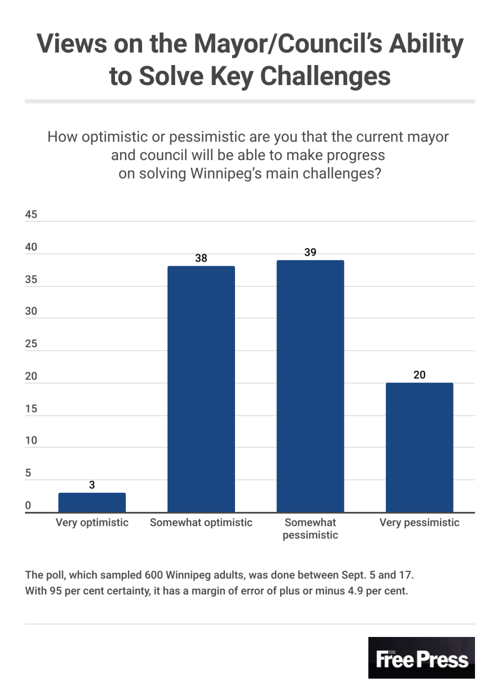 The poll, which sampled 600 Winnipeg adults, was done between Sept. 5 and 17. With 95 per cent certainty, it has a margin of error of plus or minus 4.9 per cent.