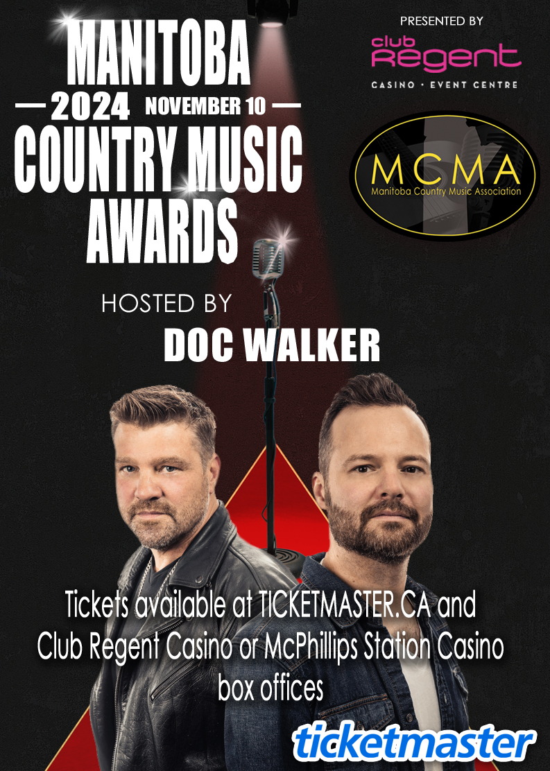 The MCMA’s 2024 Manitoba Country Music Awards show will take place Nov. 10 at Club Regent. The event will feature live performances by some of the biggest current names in Canadian country music including Doc Walker, Brandi Vezina, Catie St. Germain, Derek Peters, Desiree Dorion, Jade Turner, JR Charron, Nelson Little, Quinton Blair, Ryan Keown, Austin Ryder and the Sean Taylor Band.