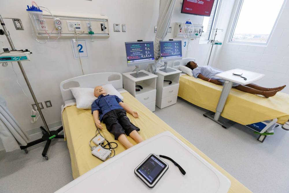 The 16,000-square-foot simulation centre is designed to look like hospital rooms and a triage area.