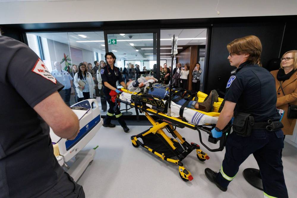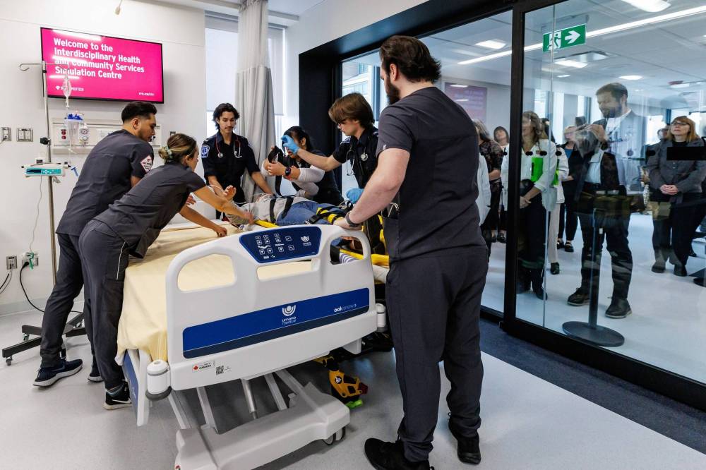 Nursing And Paramedicine program students conduct a simulation at the grand opening of Red River College Polytechnic’s new Interdisciplinary Health and Community Services Simulation Centre on the Notre Dame campus.