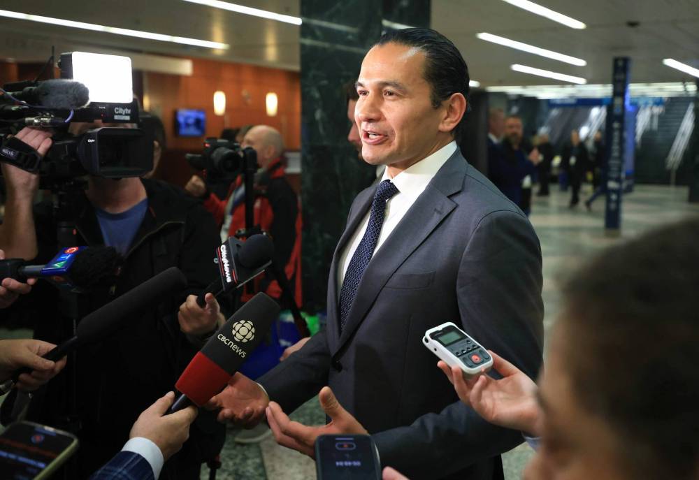 Premier Wab Kinew, pictured following his address at the Association of Manitoba Municipalities (AMM) convention on Monday, said U.S.-president-elect Donald Trump’s planned tariffs will have a “huge impact” on Manitoba.