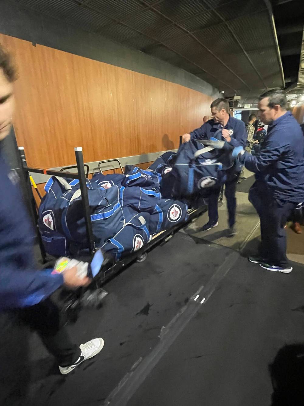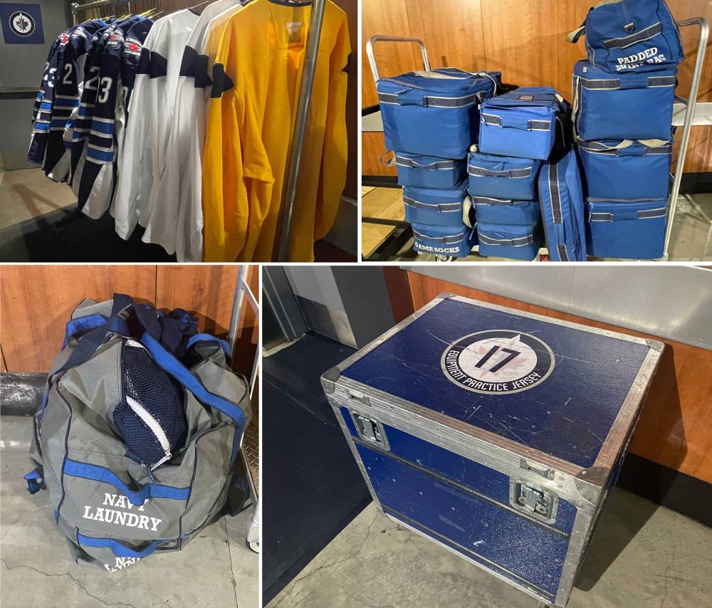 MIKE MCINTYRE / FREE PRESS Jerseys, suitcases, laundry bags and equipment cases make up some of the 2,100 kilograms of gear that follows the team around.