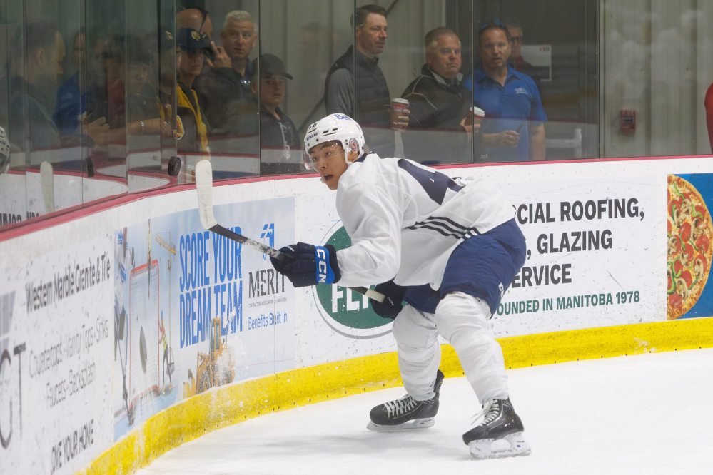 Kevin He (46) during the first day of the 2024 Winnipeg Jets development camp in July.