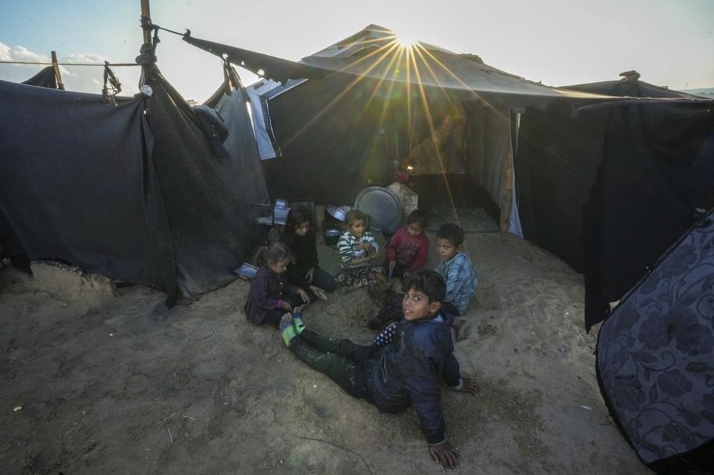 Reda Abu Zarada, 50, who was displaced from northern Gaza with her family, said the adults sleep with the children in their arms to keep them warm inside their tent.