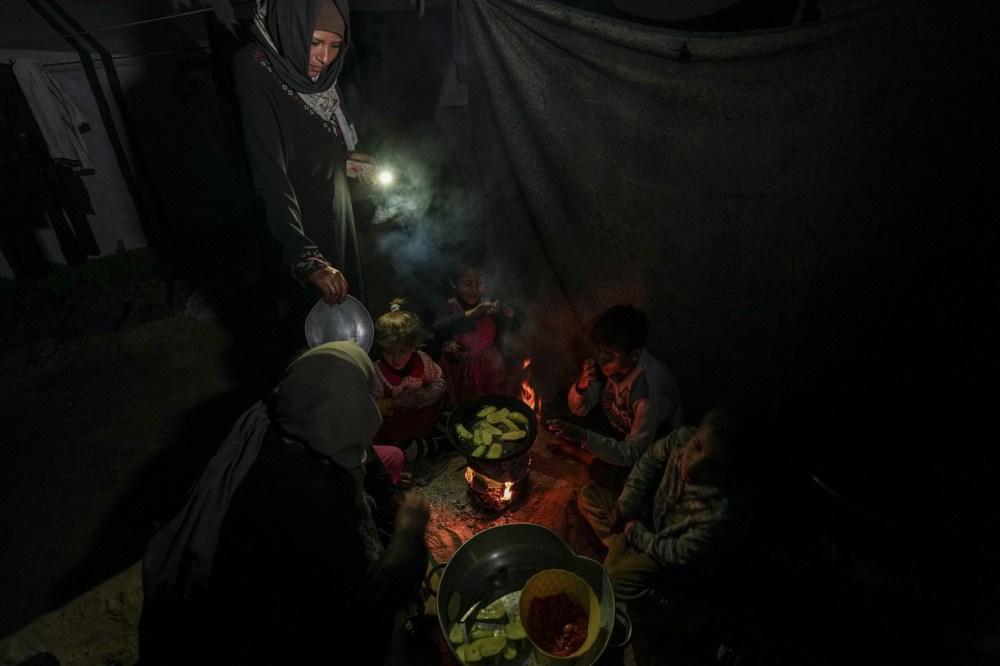 Omar Shabet, who is displaced from Gaza City and staying with his three children, feared that lighting a fire outside his tent would make his family a target for Israeli warplanes.
