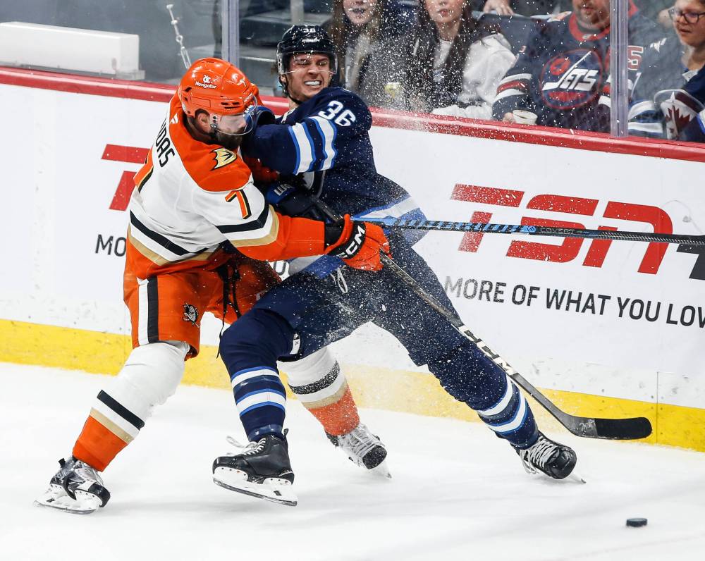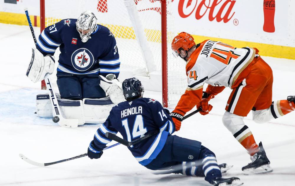 Given a 21-point difference in the standings to start the game, it looked like this could be an easy night at the office for the Jets. But the Ducks are a pesky bunch who were coming off consecutive wins over the Edmonton Oilers and New Jersey Devils and ultimately battled back to win a third straight outing against a quality opponent.