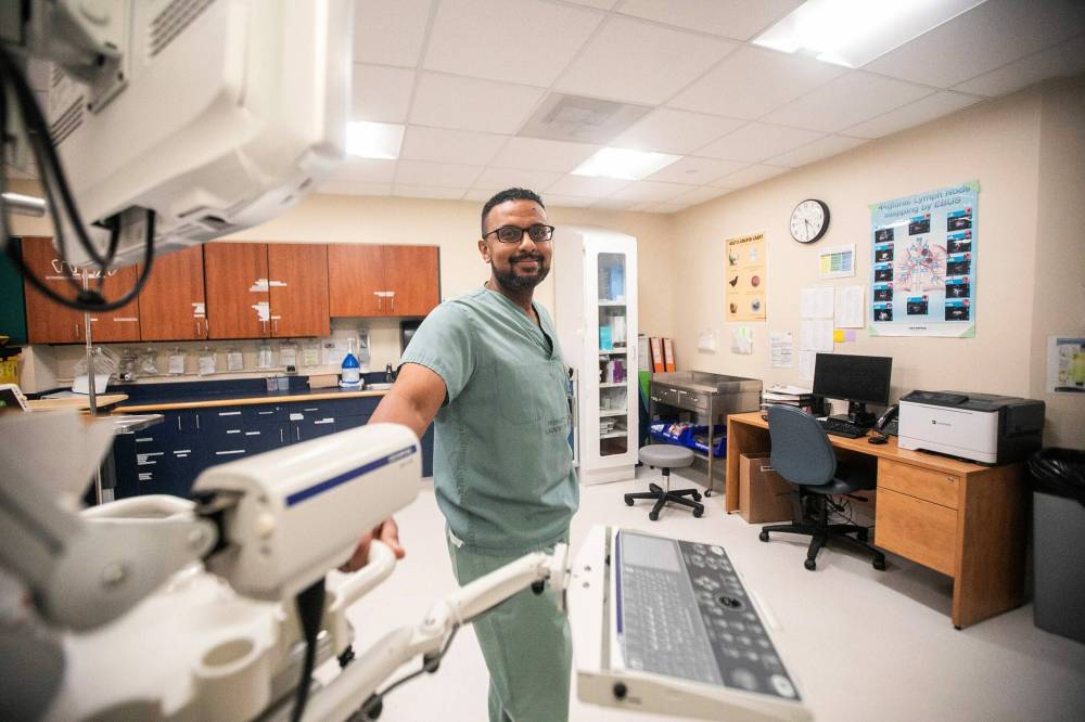 Dr. Biniam Kidane in a procedure room at the Wilf Taillieu Thoracic Surgery Clinic and Endoscopy Unit in the Health Sciences Centre which was built to diagnose and treat esophageal cancer, lung cancer and other thoracic conditions.