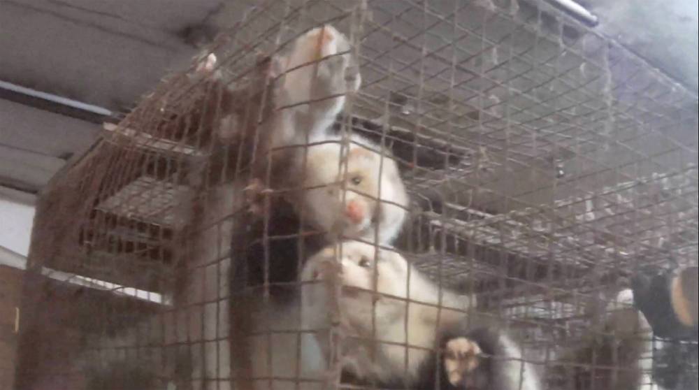 This still from a video by activist group Animal Justice shows conditions at a ferret breeding mill near Melita.