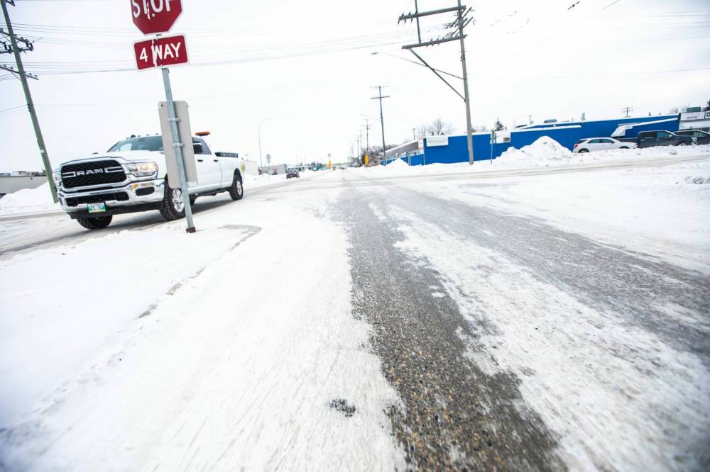A four way stop turned ice-skating rink at St. Matthews Avenue and Berry Street Thursday.“They are (slippery). I mean, 12 hours can make a huge difference, the temperature comes up a bit, that’s another problem,” he said.