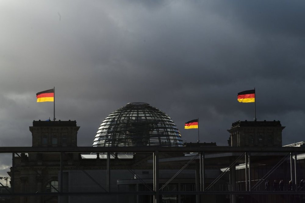 FILE - In this Friday, Nov. 29, 2019 file photo, German national flags catch the sun on top of the German parliament building, the Reichstag building in Berlin, Germany, Sunday, Sept. 26, 2021.(Photo/Markus Schreiber, File)