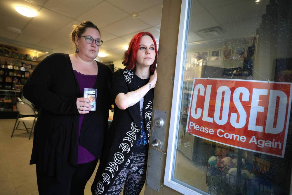 Becca Abraham (left), owner of Hoovers Cards on Main Street, with Kozzy Alexial. Alexial and a co-worker recently tried to stop a thief who took off with valuable, mint-condition Pokémon cards.Alexial said a man, who was with a second man, reached into a display case while staff were helping other customers.
