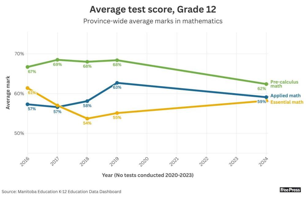 Scott said the teenagers who completed 2024 provincial tests, some of whom he taught at Dakota Collegiate, were disadvantaged because their foundational high school math courses were interrupted. They also had limited or no experience with multi-hour exams, he said.