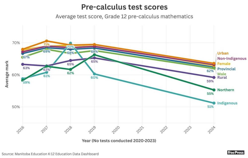 The latest roundup of Grade 12 provincial exam results indicates pre-calculus skills suffered the most from COVID-19 disruptions to schooling in Manitoba.