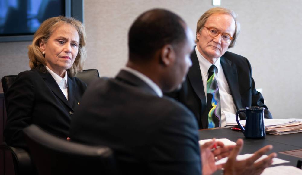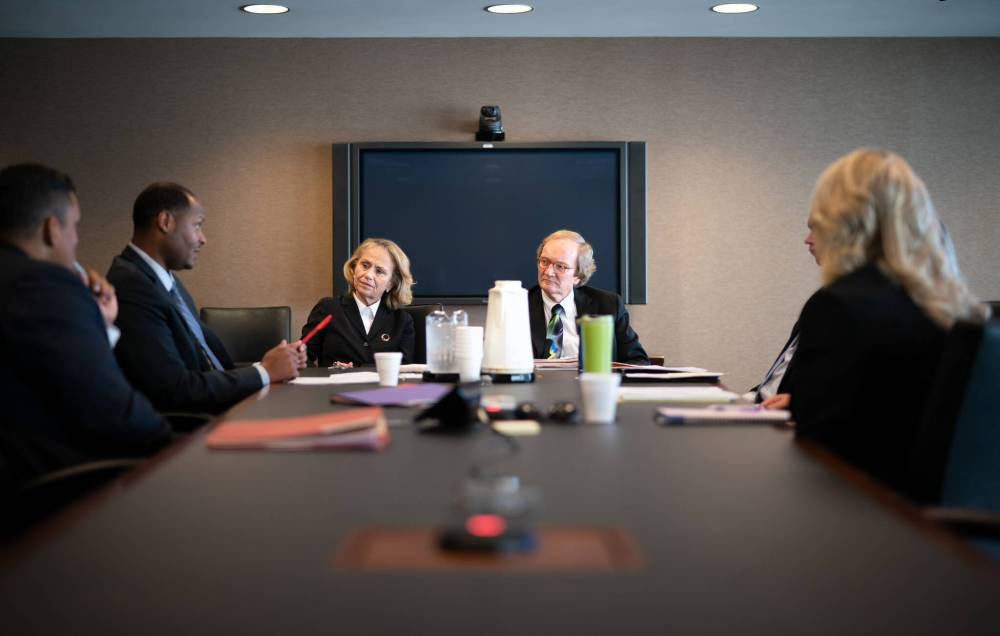 GLEN STUBBE / MINNESOTA STAR TRIBUNE Judges Susan Richard Nelson and Donovan Frank listened as U.S. Probation Officer Reggie Hall discussed a case as the group gathered for a preliminary meeting with probation staff.