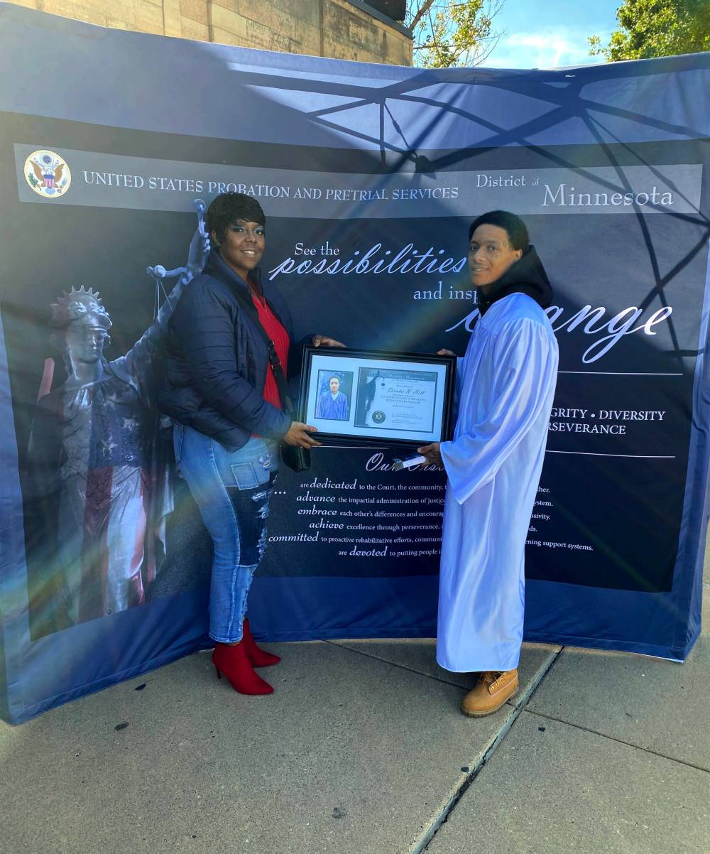 SUPPLIED Diontre Hill with his mother Trinicia Hill during his reentry court graduation.