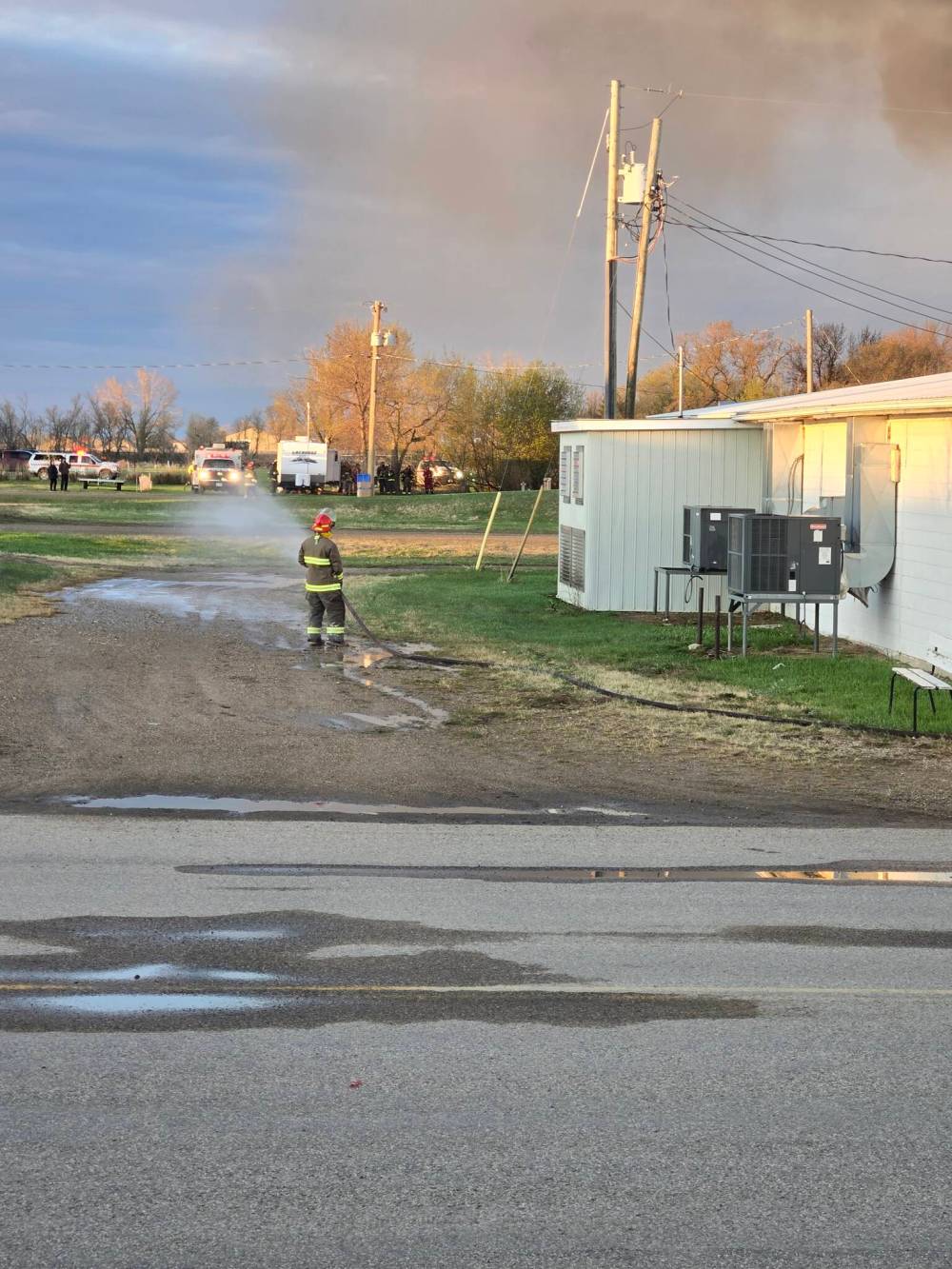 “A farmer leased it and it was full of grain. The firefighters had hoses on the store, it is closer to the elevator, but it was the campground and the park which were damaged. New picnic tables we bought last year were destroyed.