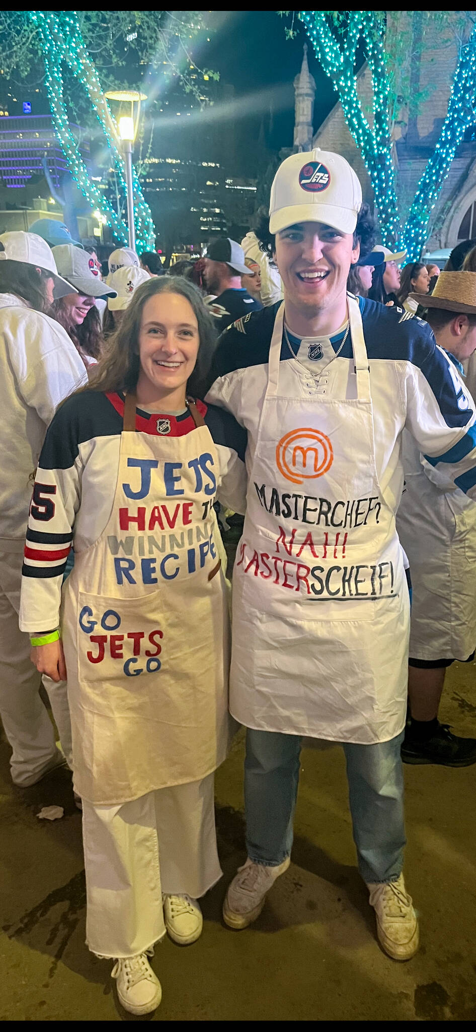 The Winnipeggers showed up adorned in white aprons painted with catchy taglines.