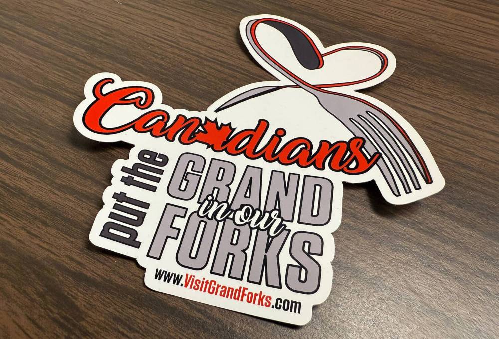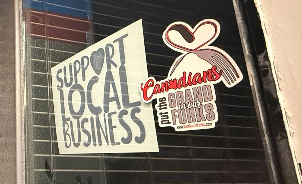 The agency distributed window decals that read, “Canadians put the Grand in our Forks.” Some businesses have posted them. Many others haven’t bothered.