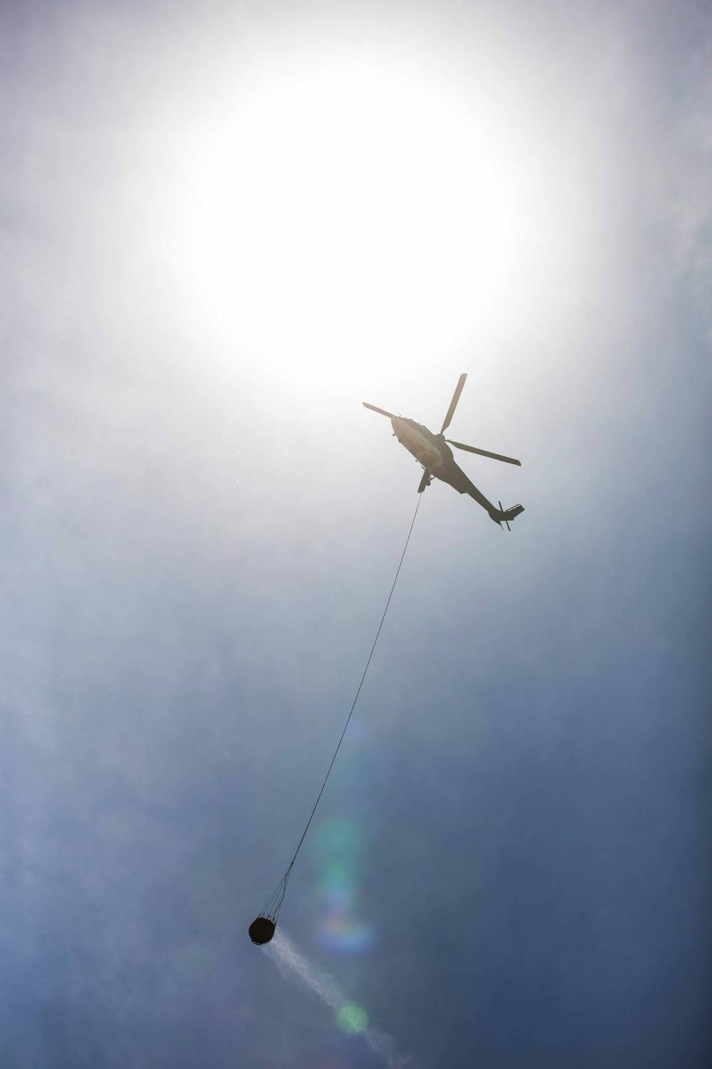 Water bombers fly back and forth overhead in Lac du Bonnet on Monday.